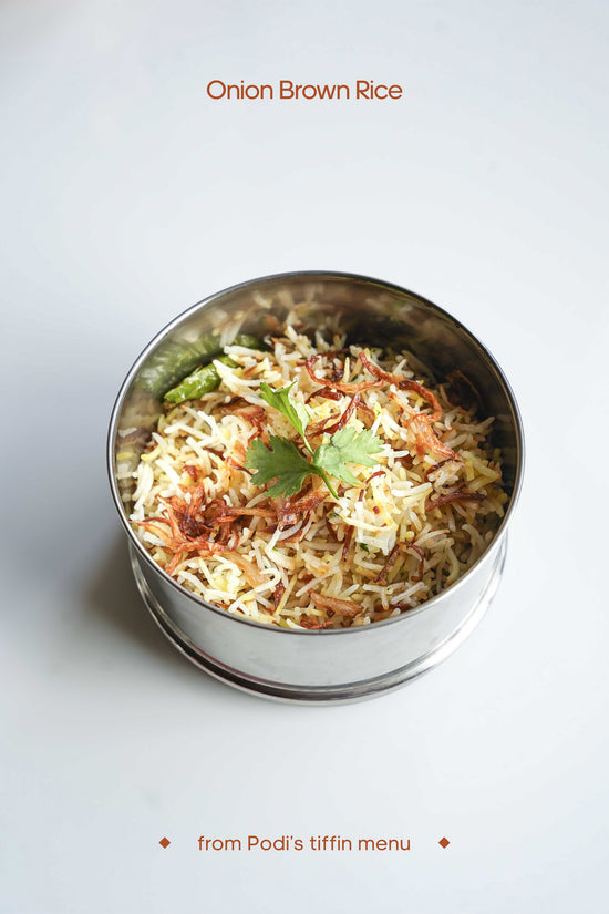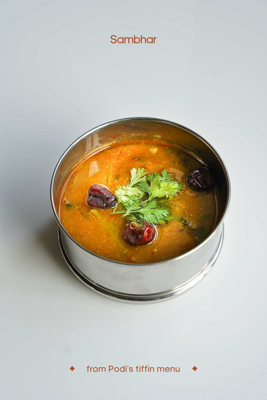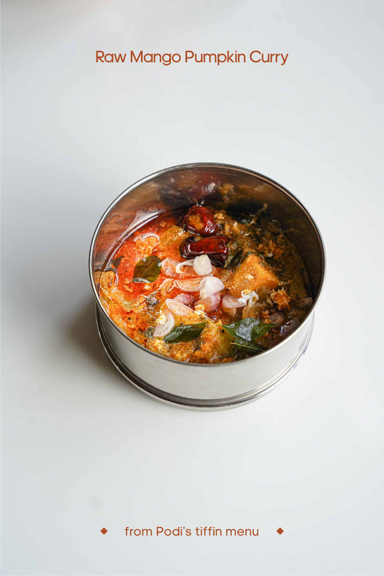 A Taste Of Podi's Kitchen: Every tiffin features a signature curry made with our freshly ground spice blends (Podi Masala).